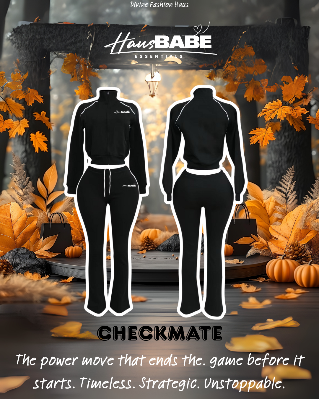 Crafted in a premium cotton-spandex knit blend, this set features a cropped zip-up jacket with pockets and your choice of flared pants or high-rise shorts (drawstring). Detailed with white side stripes and patchwork logo placement, every piece was designed to feel bold, timeless, and exclusive.